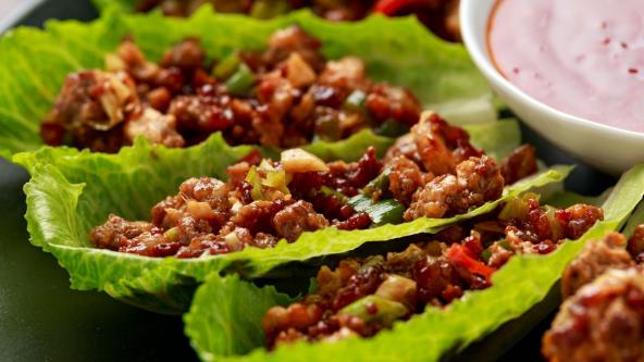 Za mleveno meso na azijski način pomešajte soja sos, beli luk, đumbir, tucanu crvenu papriku, pa ostavite na stranu. Sipajte ulje u tiganj na srednjoj vatri. Ubacite svinjetinu i pržite, lomeći kašikom ili lopaticom oko 5 minuta.