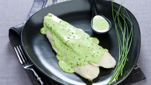Stavite blender na veliku brzinu i u tankom mlazu polako sipajte vreli otopljeni puter u smesu žumanaca. Dodajte rukolu i spanać dok ne postane glatko. Za serviranje, oslić pažljivo prebacite u veliki tanjir za serviranje. Prelijte sosom i uživajte. Možda ćete želeti da napravite i filete oslića punjeni povrćem i biljnim sirom.