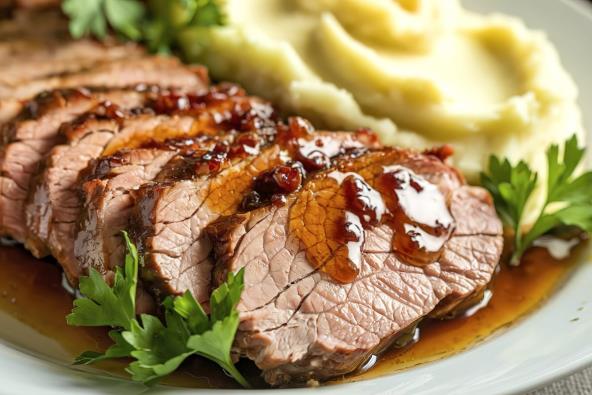 Stavite tiganj sa sosom na šporet na jaku vatru, brzo krčkajte 3 minuta dok se tečnost ne smanji u tanak sirup. Skinite sa šporeta, ubacite svinjetinu i okrenite je par puta da se dobro premaže. Isecite i servirajte sa sosom. Uživajte. Možda ćete želeti da napravite i rolovan i punjen svinjski file.