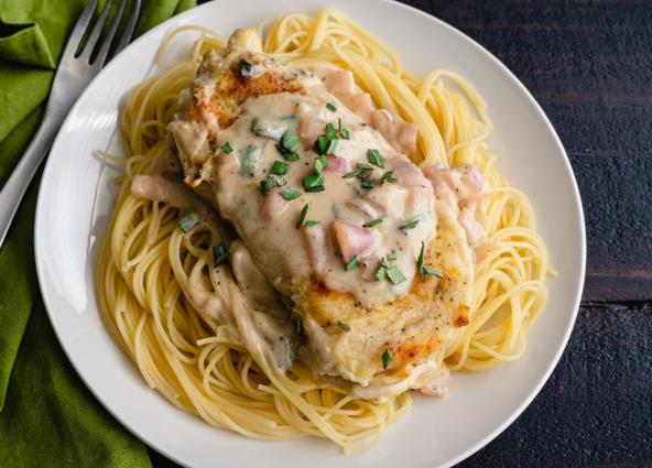Posolite i pobiberite. Vratite piletinu u tiganj i promešajte dok se ne zagreje, 4-6 minuta. Pospite peršunom. Po želji servirajte sa kriškama limuna. Možda ćete želeti da napravite i domaće pljeskavice od krompira i piletine.