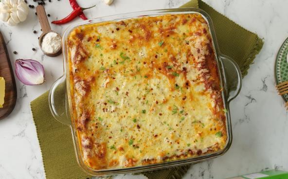 Pecite u rerni 1 do 2 minuta, ili dok sir ne porumeni na vrhu. Izvadite iz rerne i ostavite da se ohladi 10 minuta. Ukrasite svežim bosiljkom i tucanom paprikom. Isecite na kvadrate i servirajte toplo. Možda ćete želeti da napravite i lazanje sa ćuretinom i prokeljom.