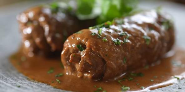 Ove sočne goveđe rolnice od tanko izlupanog mesa pune se slaninom, lukom i kiselim krastavcima, a zatim se lagano kuvaju u aromatičnom sosu od goveđeg bujona. Jelo je idealno za svečane prilike, ali i kao bogat ručak. Uz senf i pavlaku, ove rolnice dobijaju još bogatiji i kremastiji ukus.