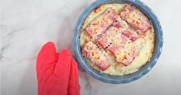 Uzmite parče šunke, stavite malo kiselog kupusa i uvijte u rolnu. Stavite je na pire krompir. Ponovite sa svim kriškama šunke. Odozgo pospite narednanim kačkavaljem i stavite u rernu na 10 minuta.