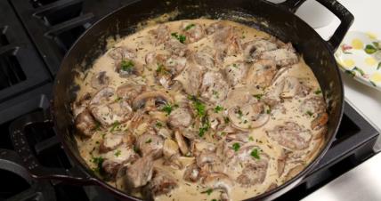 Govedina sa belim lukom i pečurkama u kremastom sosu