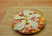 Isecite luk, krompir i tikvice na kockice. Zatim prvo malo propržite luk, pa dodajte tikvice i krompir. Poklopite i ostavite da se krčka. Jaja umutite, pa dodajte sitno seckan beli luk i promešajte. Zatim u smesu sa jajima dodajte povrće. Tiganj prečnika 20 cm premažite puterom, pa sipajte pola smese sa povrćem. Preko stavite rendani sir i kobasicu ili viršle isečene na kolutove, pa preko preostalu smesu sa povrćem. Poklopite i pecite 10 minuta na srednjoj temperaturi i onda okrenite, ponovo nauljite tiganja i pecite još 5 minuta poklopljeno.