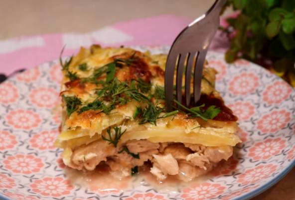 Ako želite nešto drugačiju večeru za celu porodicu, onda vam predlažemo ovo izvrsno jelo sa piletinom. Cela bit ovog recepta je da sve samo ređate i da kroz samo nekoliko koraka i za manje od sat vremena možete imati ukusan obrok na vašem stolu. Od sastojaka su vam pored piletine i krompira, potrebni još i krastavci, pavlaka, majonez i sir zbog kojih će nakon pečenja jelo biti izuzetno kremasto i sočno.