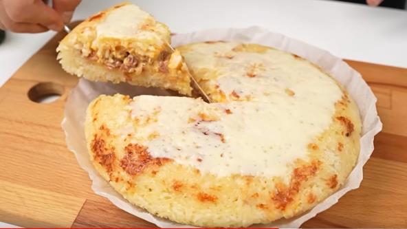 Operite pirinač, pa prebacite u šerpu. Dodajte so, pa skuvajte prema uputstvu sa pakovanja. Iseckajte slaninu, pa je propržite oko 5 minuta na srednjoj vatri. Iseckajte crveni luk, pa ga ubacite u tiganj sa slaninom. Promešajte, pa dinstajte još nekih 5 minuta. Umutite jaja, pa njima prelijte skuvan i proceđen pirinač. Promešajte pirinač i jaja. Izrendajte tvrdi sir (odvojite manji deo za posipanje), pa ga promešajte dobro sa pirinčem. Potom polovinu mešavine pirinča, jaja i sira stavite u podmazan tiganj i rasporedite po krugu. Uključite srednje nižu temperaturu, a na vrh jela stavite 4 sira u listićima. Rasporedite slaninu preko, pa dodajte još 4 sira u listićima. Preko stavite drugu polovinu pirinča. Poklopite tiganj i ostavite da se jelo sa slaninom i pirinčem prži oko 10 minuta na laganijoj vatri. Skinite poklopac, stavite pek papir preko, okrenite pomoću njega jelo, pa pržite drugu stranu još 5-7 minuta. Pospite jelo sa slaninom i pirinčem odvojenim sirom, ponovo poklopite jelo, pa pržite dok se sir ne istopi. Preporučujemo i prženi krompir sa slaninom i sirom.