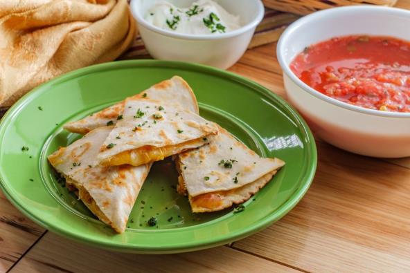 Stavite presavijene tortilje u zagrejani toster i tostirajte dok sir ne počne da se topi. Servirajte odmah sa pavlakom ili slatko-ljutim sosom.