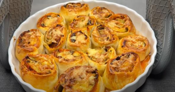 Urolajte dve velike rolne od testa, pa ih pažljivo isecite na male rolnice. Poređajte ih u pleh za pečenje, jednu pored druge. Premažite umućenim jajetom i pospite rendanim kačkavaljem. Pecite na 180 stepeni 35 minuta. Izvadite i uživajte. Možda ćete želeti da napravite i prolećne patlidžan rolnice.