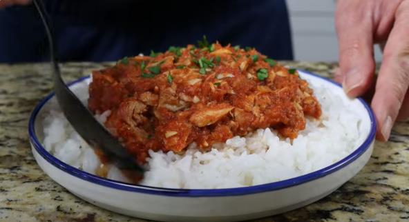 Kada se pirinač skuva sklonite šerpu sa vatre, razdvojite pirinač viljuškomi prebacite u posude za serviranje. Nakon krčkanja paradajz sosa 5 do 10 minuta, isključite vatru, dodajte oceđenu tunjevinu i mešajte dok se dobro ne sjedini. Dodajte malo mešavine tunjevine i paradajza preko svakog tanjira pirinča, pospite seckanim peršunom, i uživajte! Možda ćete želeti da napravite i pilav sa pečurkama.