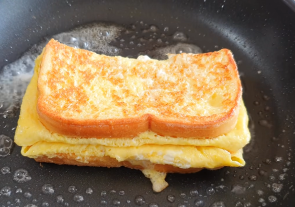 Toste presecite na 2 dela, kao i sir. Umutite jaja sa malo soli. Istopite puter u tiganju, pa dodajte umućena jaja. Stavite obe polovine hleba i umočite sa obe strane. Zatim okrenite sa sve jajima. Preklopite ivice jaja ka unutra, pa stavite kačkavalj preko. Preklopite i pržite još malo.