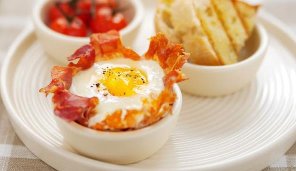 4. u svaki kalup pažljivo razbijte po jedno jaje.