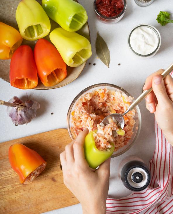 Paprike punjene pirinčem možete pripremiti kao prilog uz meso, ali mogu poslužiti i kao samostalno jelo. Po želji možete staviti i integralni pirinač. U svakom sučaju, pirinač će poprimiti fini ukus paprike i imaćete neobično jelo.