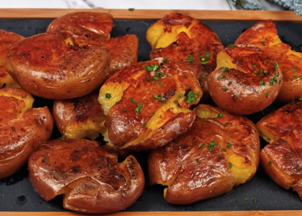 Krompir koji se kuva i peče u ljusci uvek je boljeg ukusa od onoga bez ljuske. Nakon kuvanja ga ispecite u tiganju, ali kako biste dobili zanimljiv oblik spljoštite ga čašom. Odličan je uz krmenadle, ili već neko meso po izboru. Ali dovoljan je i samo sos sa strane i američka kupus salata.