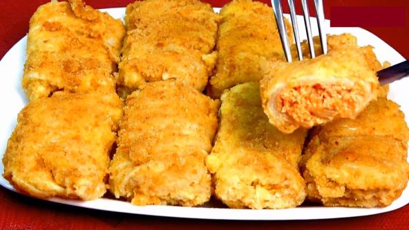 Propržite isekcani luk, pa mu dodajte seckani celer, ljutu papriku i običnu. Meso isecite na kockice i dodajte kad povrće bude pri kraju, a zatim i paradajz pire koji ste pomešali sa vodom. Poklopite i kuvajte oko pola sata. Isecite koren kupusa i odvojite listove. Stavite ih u neku posudu i prelijte ključalom vodom. Ostavite tako pola sata da listovi omekšaju. Stanjite drvenasti deo korena kako bi lakše umotali. Meso i povrće prebacite u blender i usitnite. Napunite liske kupusa kao i svaku sarmu i umotajte. Jaja i brašno umutite, a prezle sipajte u drugi tanjir. Svaku sarmu uvaljajte u jaja sa brašnom, pa u prezle. Pržite u zagrejanom ulju.