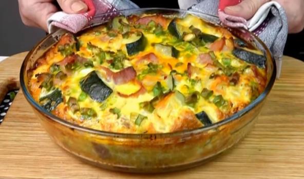 Od jeftinih sastojaka napravite odličnu lažnu pitu sa tikvicama. Ako ste ljubitelj pikantnog ukusa, ova lažna pita će vam se posebno dopasti jer sadrži i ljutu papričicu. Nije komplikovana za pripremu, sve što je potrebno da uradite je da propržite povrće i šunku i sve to prelijete jajima i na kraju ispečete.