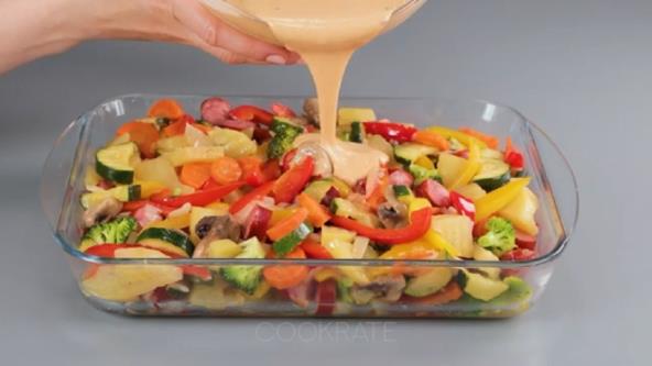 Lagani obroci su leti uvek dobro rešenje, a takvo je i ovo jelo sa povrćem i kobasicom. Brzo i lako se sprema, povrće se isecka i kratko isprži, a onda se prelije ukusnim sosom i zapeče u rerni. Na kraju ide i sir koji kada se istopi daje poseban šmek jelu, a zbog raznovrsnih namirnica ovo jelo će vas i zasititi.