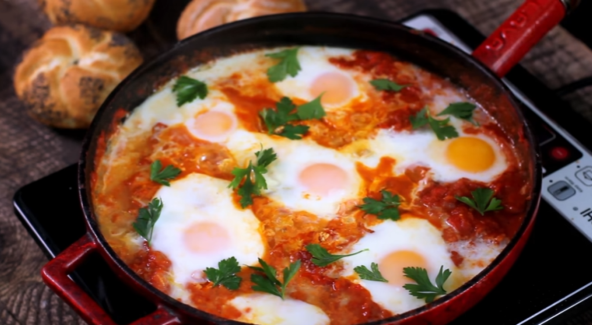 Glavni sastojci ovog popularnog specijaliteta su jaja i paradajz. Iako Šakšuka ima tunisko poreklo, veoma je popularna širom Bliskog istoka, a varijacije ovog jela mogu se naći širom sveta.
