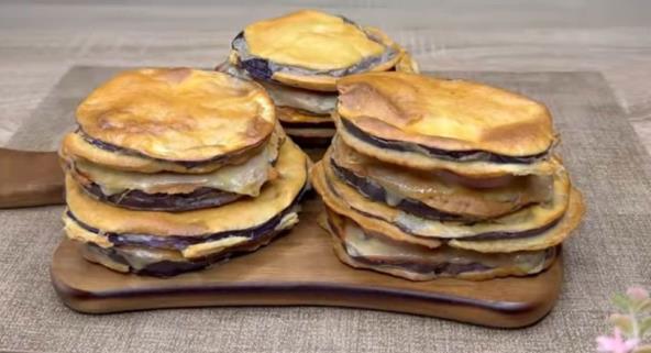 Ako ste kupili okruli patlidžan isecite ga na kolutove, a ako ste kupili duguljasti isecite po dužini. Posolite i ostavite da pusti vodu. Jaja posolite i pobiberite, pa umutite, a onda dodajte brašno i sve lepo sjedinite. Patlidžan osušite ubrusom, uvaljajte u smesu sa jajima i brašnom, pa poređajte na pleh koji ste obložili pek papirom. Pecite na 200°C oko 20-25 minuta. Na gotov patlidžan poređajte sir i šunku i preklopite drugim patlidžanom. Vratite u rernu još nekih 5-8 minuta.