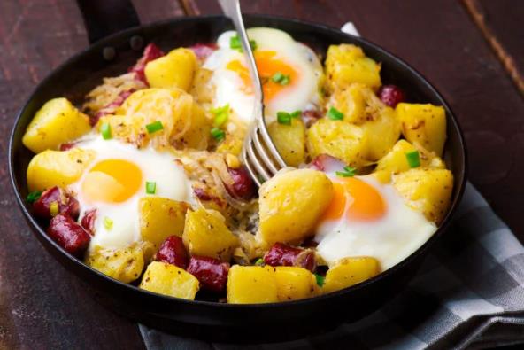 Kada u frižideru nemate puno sastojaka ne znači da ne možete da napravite ukusno jelo. Za ovo su vam potrebni sastojci koje svako već ima, kao što su krompir, luk, jaja i pavlaka. I obično jelo možete da pretvorite u remek delo ako napravite po ovom receptu. Propržite krompir sa lukom, a onda poslužite sa jajima.