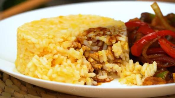 Na maslinovom ulju propržite pirinač minut, dva. Zatim sipajte vodu, posolite, pa poklopite i kuvajte nekih 10 minuta. Odvojite žumanca i belanca, pa kada pirinač upije svu vodu dodajte prvo umućena žumanca i promešajte. Nakon minut dodajte i belanca koja ste umutili sa malo soli i opet promešajte. Ostavite još minut, dva na šporetu.