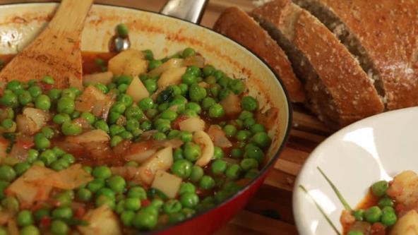 Grci znaju kako da naprave pravo letnje jelo, koje je zasitno, a ne pada teško na stomak. U pitanju je gulaš od graška i krompira koji se brzinski sprema, a koji će cela porodica zavoleti čim proba. Možete da poslužite sa parčetom domaćeg hleba, kao što je naan u koji se isto dodajte grašak, ali i nekom sezonskom salatom.