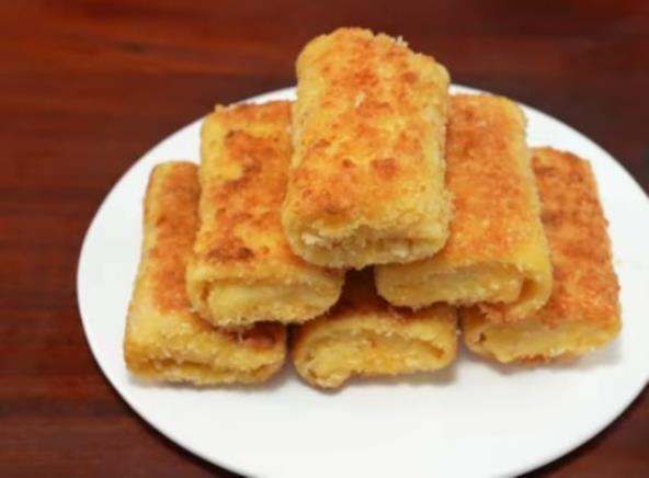 Skuvajte krompir, pa ga ispasirajte. U tiganju propržite sitno seckani crni luk i papriku dok ne omekšaju. Dodajte u pire, a onda dodajte i rendani sir, seckani mladi luk, posolite i pobiberite. Dobro sjedinite smesu. U brašno dodajte so i šećer, a zatim i jaja. Sipajte mleko i sjedinite smesu, pa na kraju dodajte ulje i opet umutite. Ispržite palačinke. Zatim ih nafilujte smesom od pire krompira i urolajte. Umutite jaja i dodajte brašno, pa sjedinite. Uvaljajte palačinke prvo u tu smesu, pa u prezle i ispržite u zagrejanom ulju.