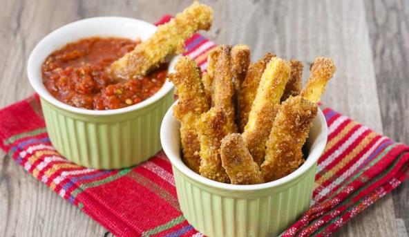 4. Tikvice prvo umočite u jaje, pa uvaljajte u mešavinu s prezlama i pržite u zagrejanom ulju dok ne porumene, oko 3 minuta.