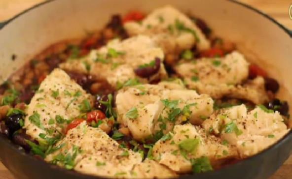 Počela je sezona slava, a uskoro će i Božićni post, pa vam donosimo savšren recept za ribu. Priprema se jednostavno i brzo i to u jednoj posudi. U ovom receptu se koristi bakalar, ali možete da izaberete i filete ribe po želji. Za ovu ribu je potrebno manje od pola sata, a kuva se zajedno sa leblebijama, maslinama i čeri paradajzom.