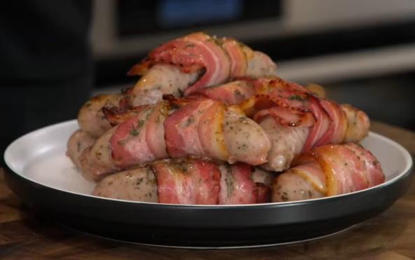 Pigs in blanket ili kobasice urolane u slaninu najčešće se služe u Engleskoj i Irskoj. Obično se služe uz ćuretinu na božićnoj večeri, a mi predlažemo da ih poslužite uz pečenje za Svetog Jovana. Takođe, ovako pripremljene kobasice su odlična ideja za predjelo, kao i za ručak. Dovoljno je da ih poslužite sa salatom.