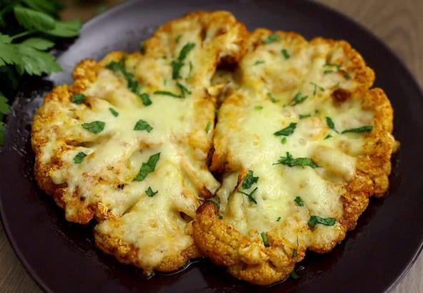 Pecite karfiol u zagrejanoj rerni na 180°C oko 20 minuta. Zatim pospite rendani sir i pecite još 10 minuta. Gotov karfiol pospite seckanim peršunom.