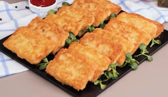 Pomešajte rendani krompir sa mlevenim mesom, kao i rendanim sirom. Rendani krompir dobro procedite pre nego što dodate u mleveno meso. Posolite i pobiberite, pa sve lepo sjedinite rukama. Stavite smesu u kese za zamrzivač, pa dobro zatvorite i stavite u zamrzivač. Isecite na pravougaonike, pa uvaljajte u umućena jaja, a zatim i u prezle. Pržite u tiganju u kojem ste zagrejali ulje.