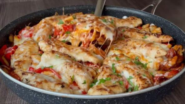 Meso isecite na šnicle, pa posolite i pobiberite sa obe strane. Pospite brašno i lepo utrljajte. U tiganju istopite puter i sipajte malo ulja, pa ispržite meso. Izvadite meso iz tiganja, pa propržite sitno seckani crni luk. Kada on omekša dodajte seckanu papriku, a posle par minuta i isečeni paradajz. Lepo promešajte, pa dodajte sitno seckani beli luk. Sipajte paradaz sos, vodu, posolite i pobiberite, pa pospite italijanskim začinom. Sve lepo promešajte i krčkajte 10 minuta, pa vratite meso. Pospite rendanim sirom, pa stavite u rernu i pecite na 200°C oko 10 minuta.