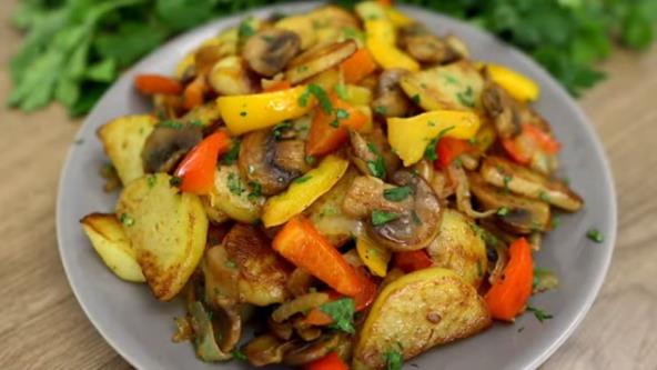 Recept za prženi krompir sa pečurkama i paprikom: