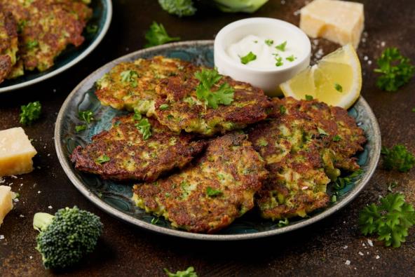 Seckani brokoli blanširajte na vodi dva minuta. Ubacite u blender omekšan brokoli, brašno i jaja i belndirajte dok se dobro ne sjedini. Prebacite smesu u posudu. Pomešajte kačkaavalj, mešavinu suvih začina, so i biber dok se dobro ne sjedine. Zagrejte ulje u tiganju na srednje jakoj vatri.