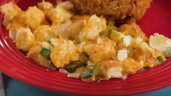 Recept za tikvice zapečene u rerni sa kockicama hleba i sirom: