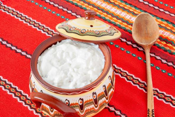 Kako biste napravili bugarski jogurt, u velikom loncu na šporetu zagrejte mleko na 91-94 C. Ostavite da se ohladi na 43-46 C. Nakon toga lagano umutite jogurt u mleko.
