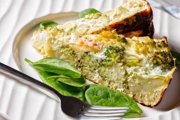 Kako biste pripremili brokoli na ovaj način, prvo zagrejte rernu na 175 stepeni. Poprskajte vatrostalnu posudu za pitu uljem. Iseckane cvetove brokolija propržite na jednoj kašiki vode, dok ne postanu mekani. Ravnomerno rasporedite brokoli u posudu i pospite ga rendanim sirom.