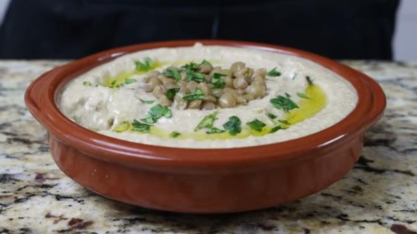 Prebacite humus u plitku činiju. Kašikom oblikujte blage talase po površini, zatim ukrasite sačuvanim sočivom, seckanim korijanderom i malo maslinovog ulja. Poslužite na sobnoj temperaturi ili ohlađeno.