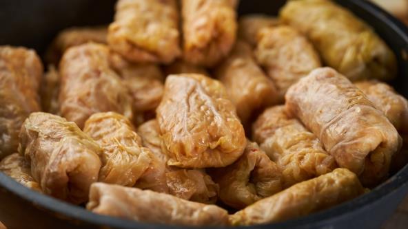 Listove kiselog kupusa odvojte i potopite u hladnu vodu oko 15 minuta kako bi se ublažila slanoća. Po potrebi odstranite zadebljani deo korena lista.