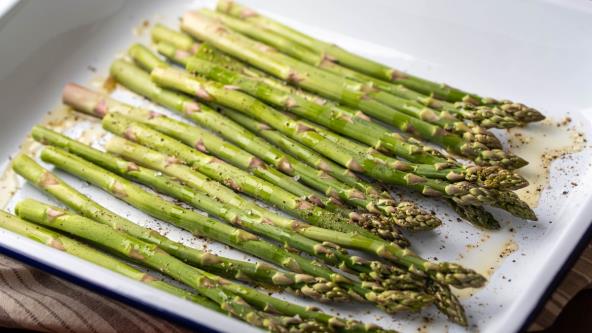 Rasporedite špargle u jednom sloju na pleh obložen papirom za pečenje. Blago ih posušite papirnim ubrusom kako bi se lepo zapekle.