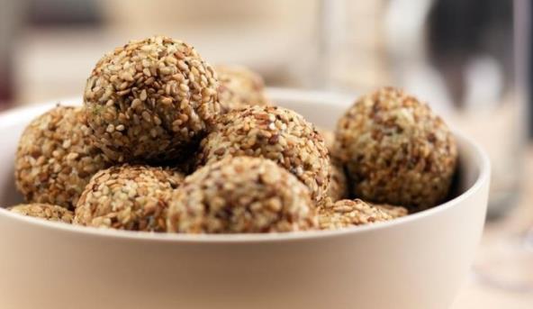 3. Uvaljajte ih u propržen susam (ili propržene seckane bademe i lešnike) i pre služenja držite ih sat vremena u frižideru da se stegnu.