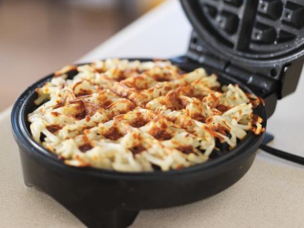 5. Stavite krompir u aparat i poklopite. Blago pritisnite i ostavite da se sprema 2 minuta, a zatim još malo pritisnite poklopac. Pržite krompir još 5 minuta. Galete su gotove kada krompir lepo porumeni. Poslužite dok je još toplo.