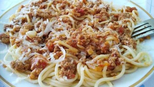 Ispržiti sitno seckan luk na ulju. Dok nam se luk prži staviti špagete da se kuvaju.