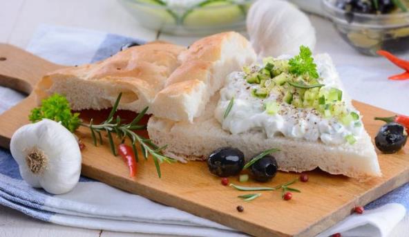3. Usitnjene masline, paradajz i beli luk umešajte u krem sir. Posolite, pobiberite, dodajte prstohvat šećera, promešajte, pospite seckanim vlašcem, ukrasite listićem nane i servirajte.