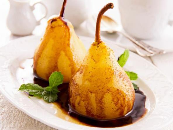 4. Sos preliti po kruškama i ukrasiti listićima nane.