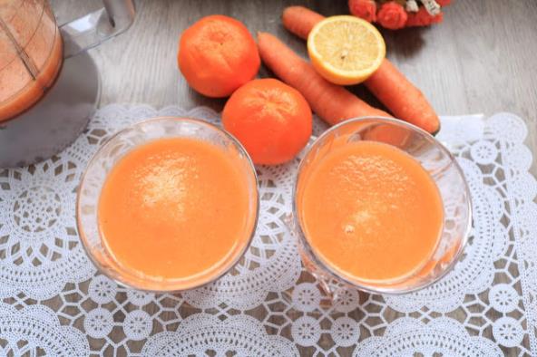 U blender sipati vodu i na krugove iseckanu šargarepu, dodati seckanu jabuku, bananu, ceđen sok od mandarine i limuna i kašičicu meda. Sve izblendati. Ukoliko vam je kašasti sok gust možete ga razrediti.