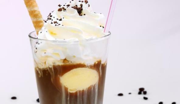3. Liker i vanilu dobro promešajte, sipajte preko sladoleda, dolijte kafu, stavite šlag odozgo i pospite kafom.