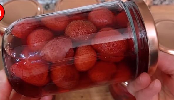 Jagode očistite i potopite u vodu nekih 5-10 minuta, a zatim ih dobro operite. Sipajte jagode u sterilisane tegle, a onda u svaku teglu sipajte po 2 kašike šećera. Prelijte ključalom vodom, a onda zatvorite tegle. Poređajte tegle u šerpu, pa sipajte vodu tako da dođe do sredine tegle. Kuvajte dok ne proključa, a onda kuvajte još 15 minuta. Izvadite tegle iz šerpe i ponovo zatvorite poklopac, da proverite da ste dobro to uradili. Okrenite ih naopačke, pokrijte krpom i ostavite jedan dan. Pipnite teglu, ako se ne trese znači da je dobro zatvorena. Čuvajte u frižideru ili na hladnom i tamnom mestu, a može da stoji i do godinu dana. Kada budete želeli da koristite samo dodajte još malo vode i šećera i kuvajte 10 minuta.