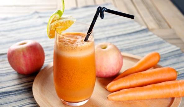 2. Šargarepu isecite na sitne kockice, pa sve zajedno stavite u sokovnik (možete i u seckalicu, pa procedite sok kroz gazu).